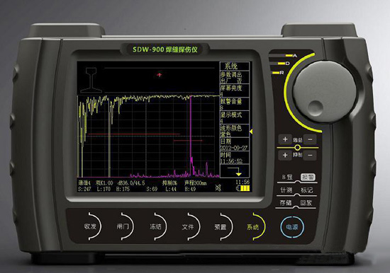 SDW-900数字钢轨探伤仪根据钢轨焊缝探伤的特点,设计四个独立的超声波探伤通道,探伤工作时通道自动切换,创新使用一发双收、弧形探头的探伤方法,利用灵活的K型扫查架,有效地提高了探伤效率和探伤质量。全程存储探伤作业的A显波形和B显图形,实现探伤过程的监控和探伤数据事后分析、检索,自动生成的伤损数据可以直接导入铁路工务管理信息系统(PWMIS)。该仪器获得成都铁路局2011年度科学技术进步奖一等奖。